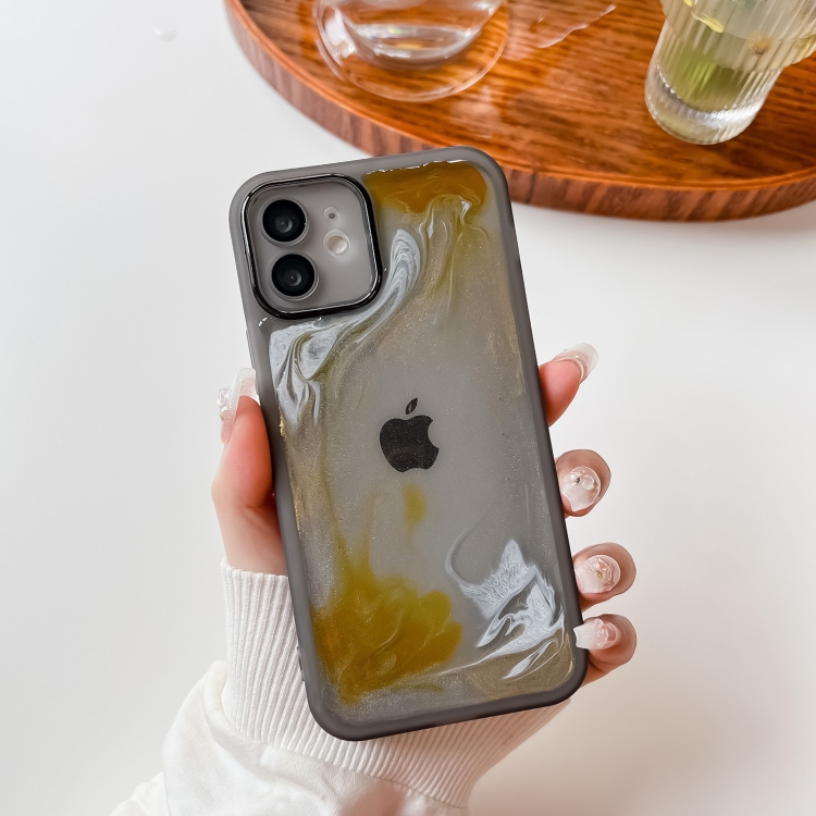 Funda para iPhone 12 Pintura al Óleo Galvanoplastia Caja del Teléfono TPU (Gris)