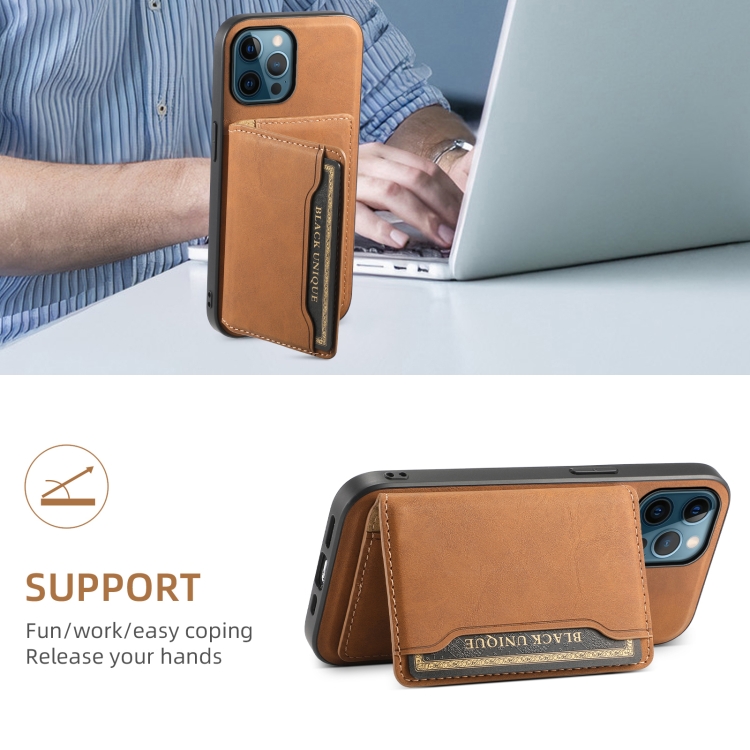 Funda para teléfono Denior D13 iPhone 12 Pro con bolsa para tarjeta Magsafe de cuero (Marrón)