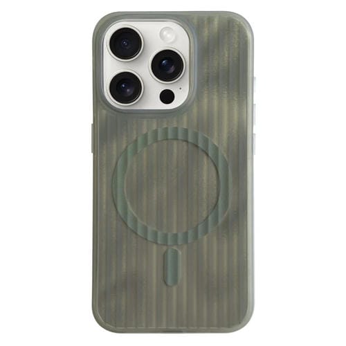 Funda para Teléfono iPhone 12 Pro Magsafe Magnética Sensación de Piel a Rayas (Verde)