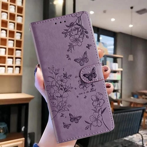 Funda de Cuero iPhone 12 Pro Max Butterfly Love Flower En Relieve (Púrpura)