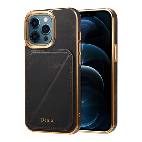 Funda para Teléfono Denior iPhone 12 Pro Max Oil Wax Leather Ranura para Tarjeta (Negro)