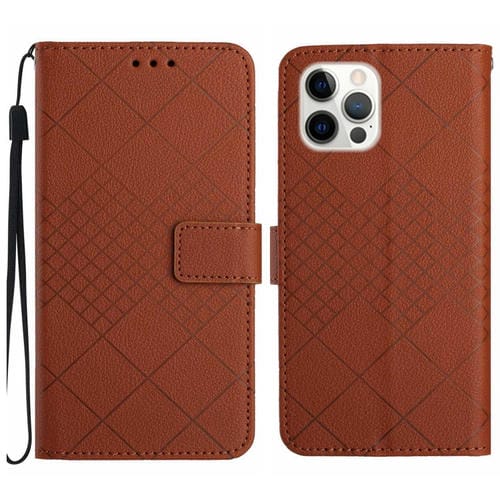 Estuche para Teléfono iPhone 12 Pro Max Cuero Textura Rejilla Rómbica (Marrón)
