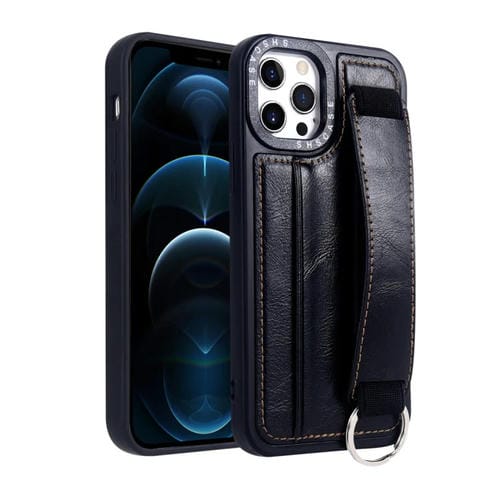 Funda para iPhone 12 Pro Max Marco de Fotos Tarjeta Monedero Correa para la Muñeca Contraportada (Negro)