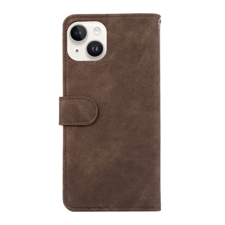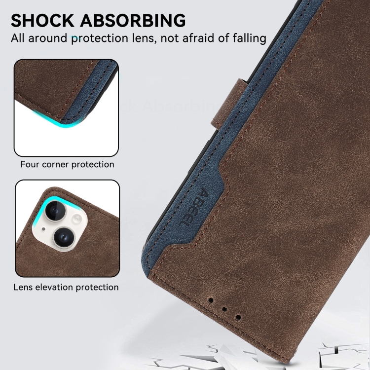 Estuche Magnético de Cuero Abeel para iPhone 13 Color Block Rfid (Marrón-Azul)