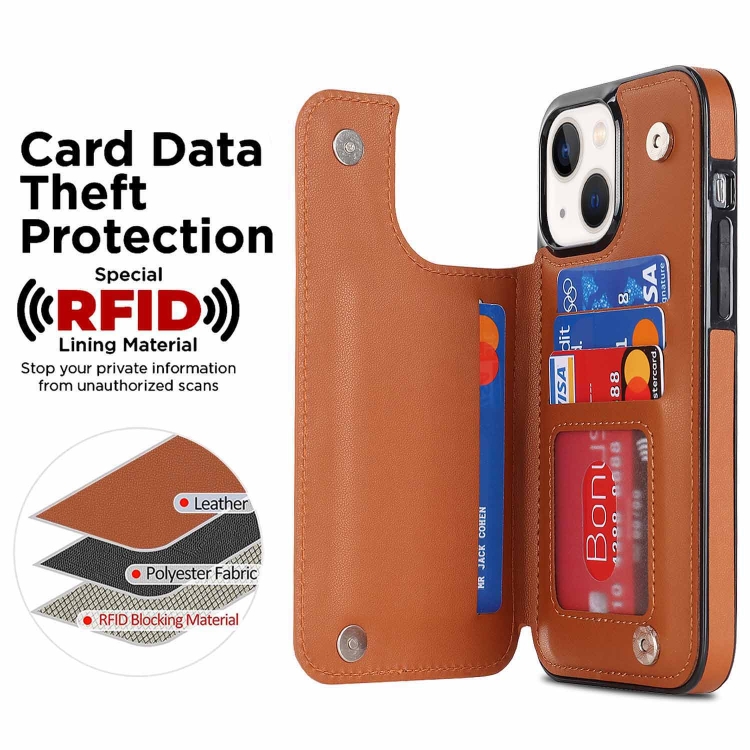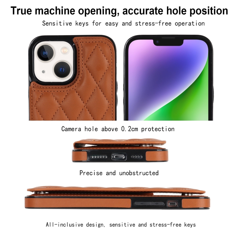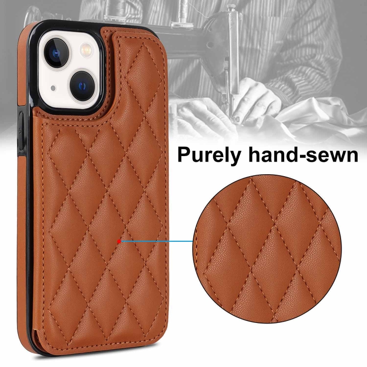 Funda para iPhone 13 Doble Hebilla Rombico PU Cuero para Teléfono (Marrón)