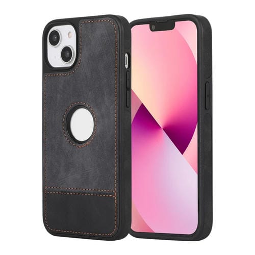 Caja de teléfono PU para iPhone 13 con empalme costura y recorte hueco (Negro)