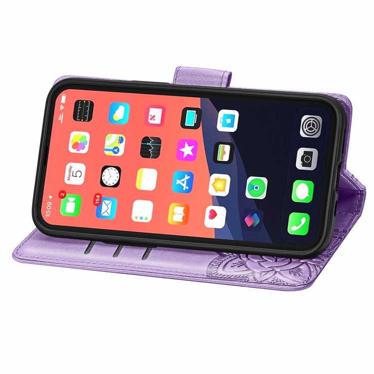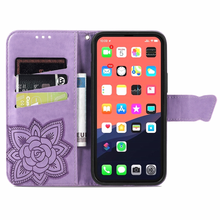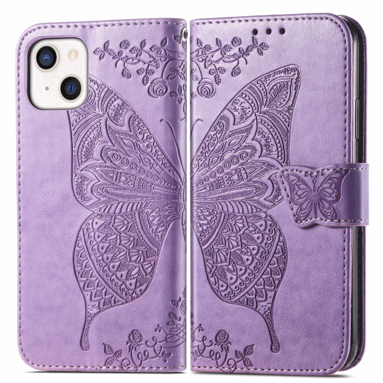 Estuche de Cuero para iPhone 13 Mini Butterfly Love Flower con Tapa Horizontal, Soporte, Ranura para Tarjeta, Billetera y Cordón (Púrpura Claro)