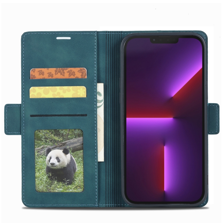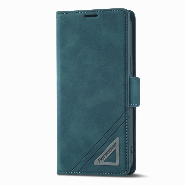 Funda para iPhone 13 Mini FoRWenw Cuero con Hebilla de Doble Cara (Cian Oscuro)