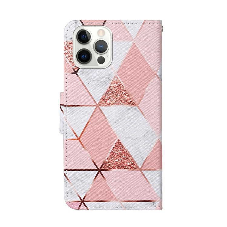 Estuche de Cuero para iPhone 13 Pro con Tapa de Patrón de Dibujo Coloreado (Mármol)