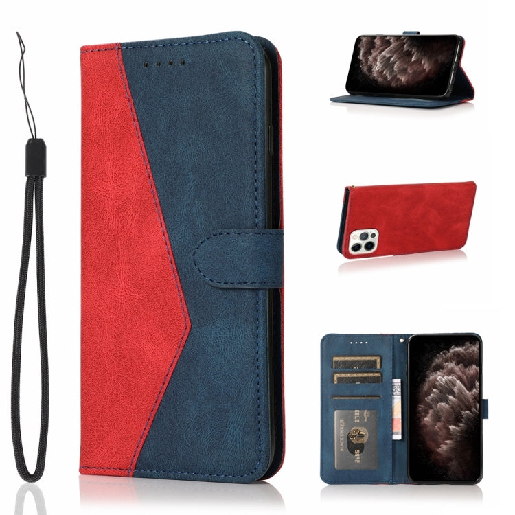 Estuche de Teléfono iPhone 13 Pro Max Cuero con Costuras Dos Colores (Rojo Azul)