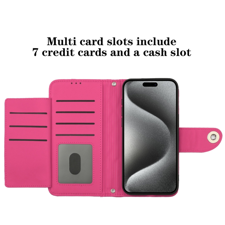Funda para Teléfono iPhone 13 Pro Max Tapa de Cuero Textura Rómbica Cordón (Rojo Rosa)