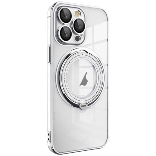 Estuche para teléfono iPhone 13 Pro Max Galvanoplastia Magsafe Soporte Rotación 360 a prueba de golpes (Plata)