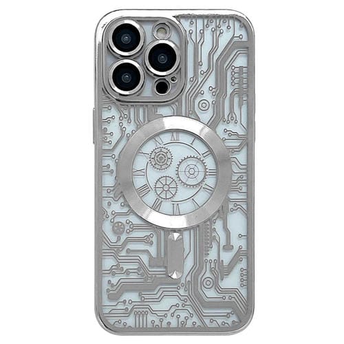 Estuche para Teléfono iPhone 13 Pro Max Patrón de Placa de Circuito Electrochapado Magsafe (Plata)