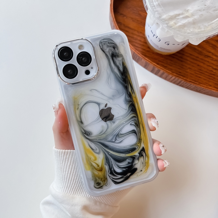 Caja del Teléfono TPU para iPhone 13 Pro Max Pintura al Óleo Galvanoplastia (Blanco)