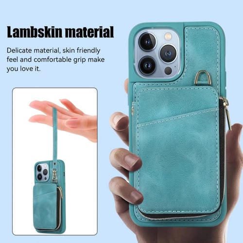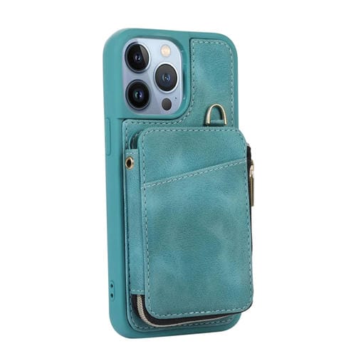 Funda para Teléfono iPhone 13 Pro Max Zipper Card Bag Contraportada (Turquesa)