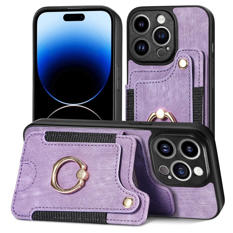 Funda para iPhone 13 Pro Retro Skin-Feel Ring Multi-Card Wallet (Púrpura)