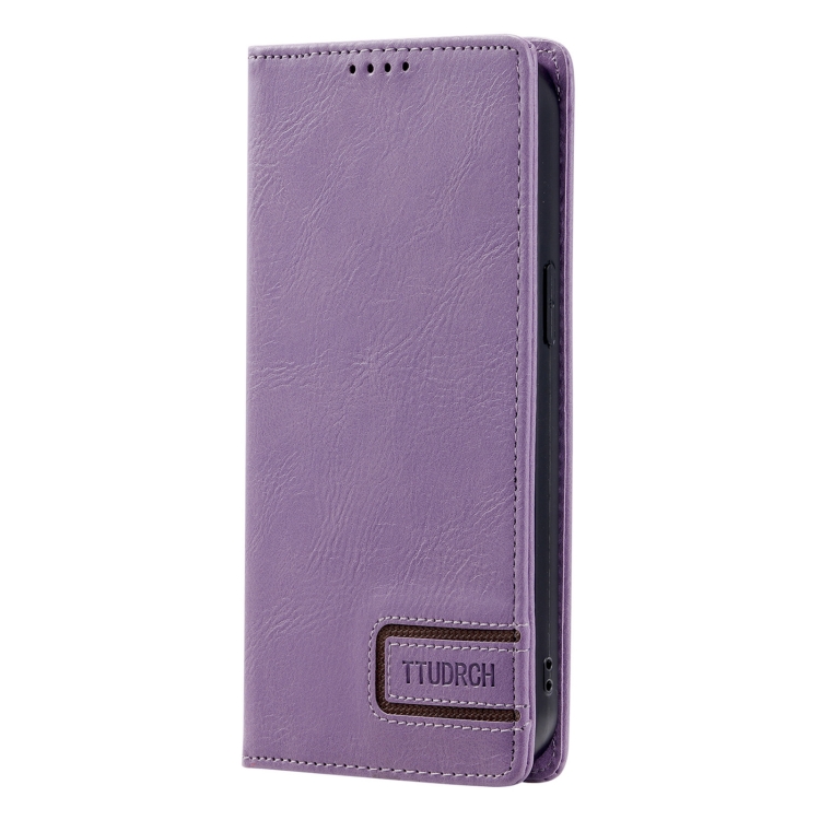 Funda de Teléfono Ttudrch para iPhone 14 / 13 Cuero Magnético Textura Retro (Púrpura)