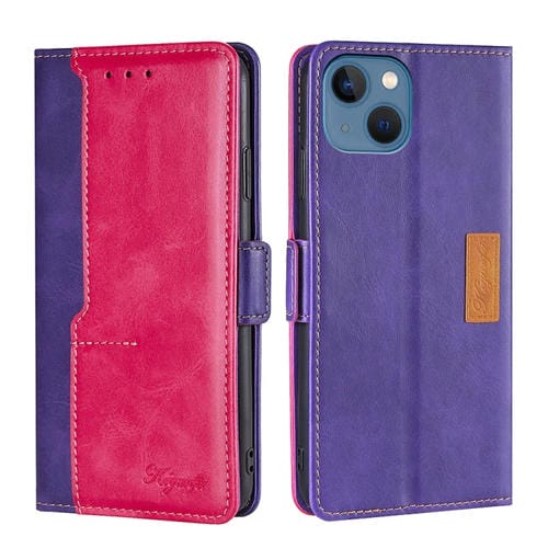 Funda para iPhone 14 de Cuero con Hebilla Lateral y Color de Contraste (Púrpura + Rosa Roja)