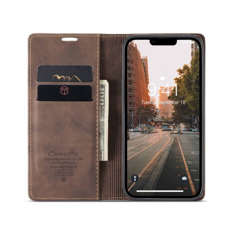 Estuche para teléfono Caseme Caseme-013 para iPhone 14 Cuero esmerilado retro multifuncional (Café)