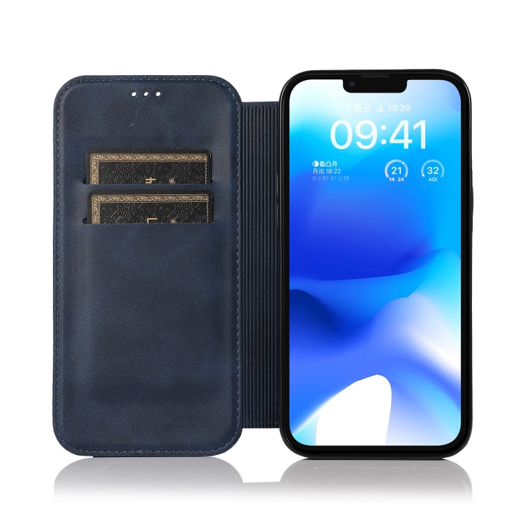 Funda para iPhone 14 Cierre Magnético Fuerte PU + TPU Cuero (Azul)