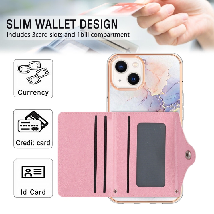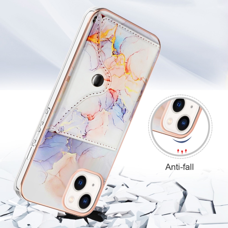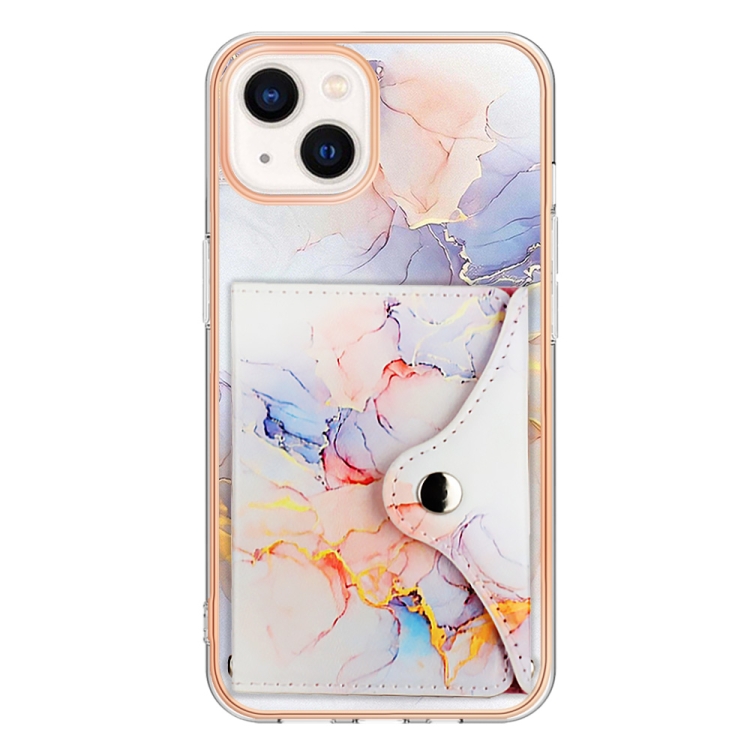 Estuche para teléfono iPhone 14 con ranura para tarjeta Imd patrón Mármol (Galaxy Marble White)