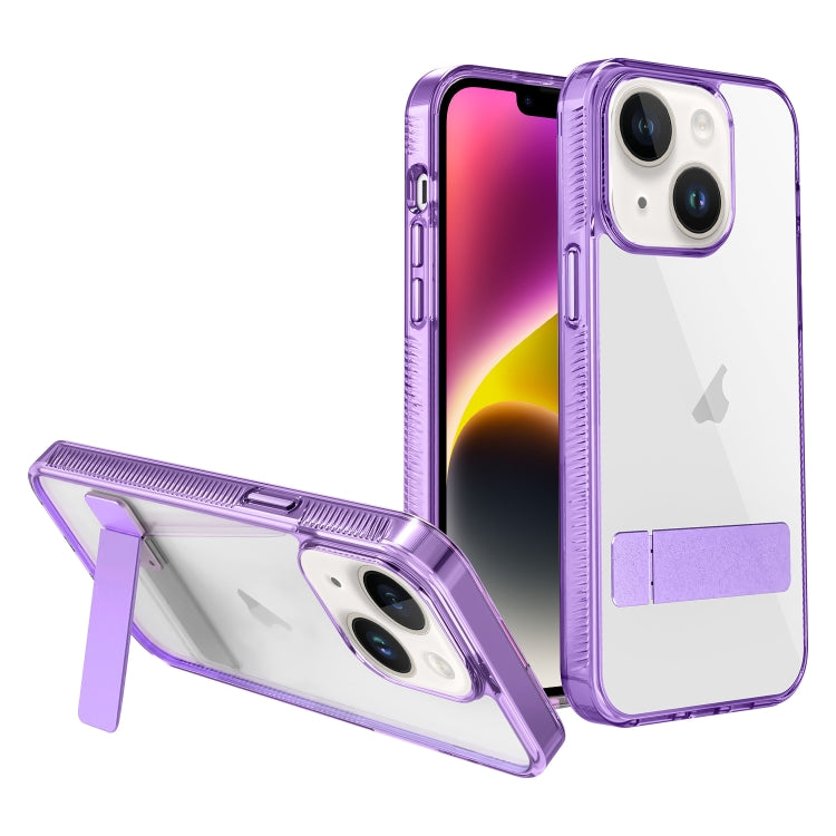 Estuche para Teléfono iPhone 14 con Soporte Alto Transparente (Púrpura)