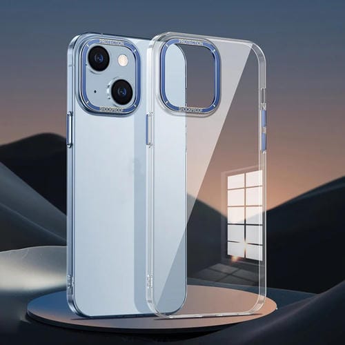 Funda para iPhone 14 Metal Lens Ring Clear PC Phone Case (Sierra Blue)