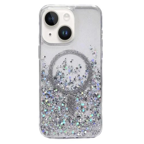 Estuche para teléfono TPU híbrido Magsafe iPhone 14 Plus con brillo degradado para PC (Plateado Degradado)