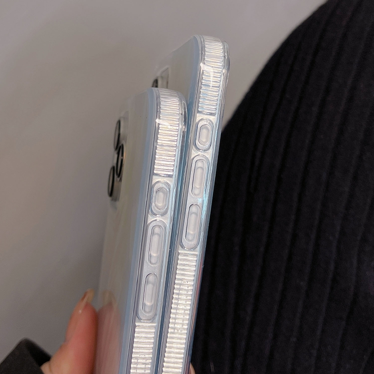 Estuche híbrido para teléfono iPhone 14 Plus TPU acrílico con plumas degradadas y sello plateado (Plateado)