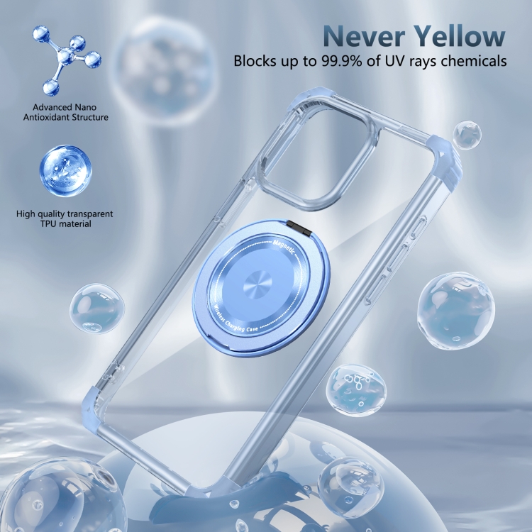 Estuche Magnético para iPhone 14 Plus Gold Shield Cd Pattern con Soporte Giratorio (Azul Transparente)