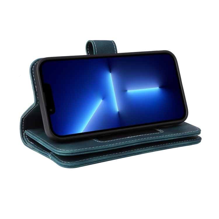 Funda para iPhone 14 Multifuncional con Ranura para Tarjeta y Monedero con Cremallera (Azul)