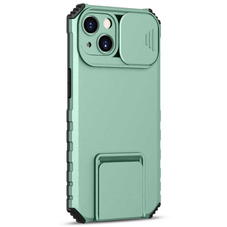 Estuche deslizante para teléfono iPhone 15 Camshield con soporte estereoscópico (Azul Claro)