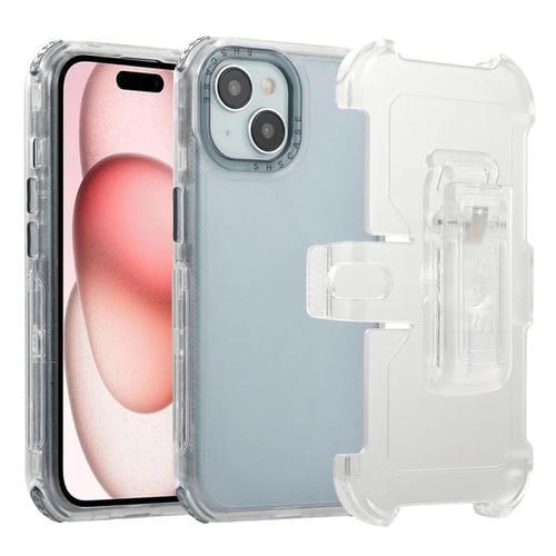 Estuche para Teléfono iPhone 15 Frosted PC + TPU con Clip Trasero (Azul Transparente)