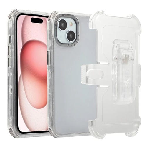 Estuche para teléfono iPhone 15 Frosted PC + TPU con clip trasero (Negro Transparente)