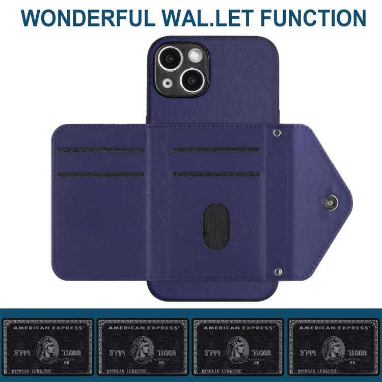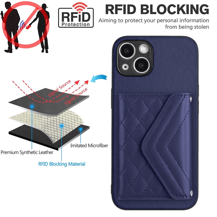 Estuche para Teléfono iPhone 15 con RFID Bolsa para Tarjetas Textura Rómbica Cordón Largo (Púrpura Oscuro)