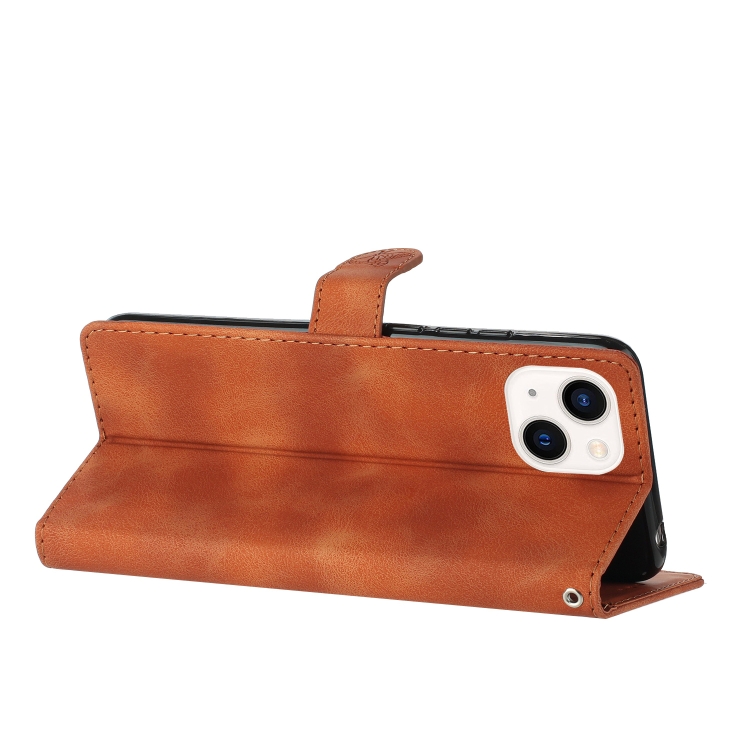 Funda para iPhone 15 Cuero con Flor Mariposa Relieve Patrón (Marrón)