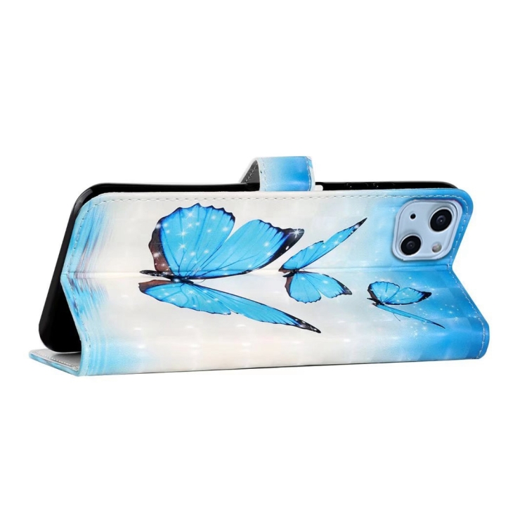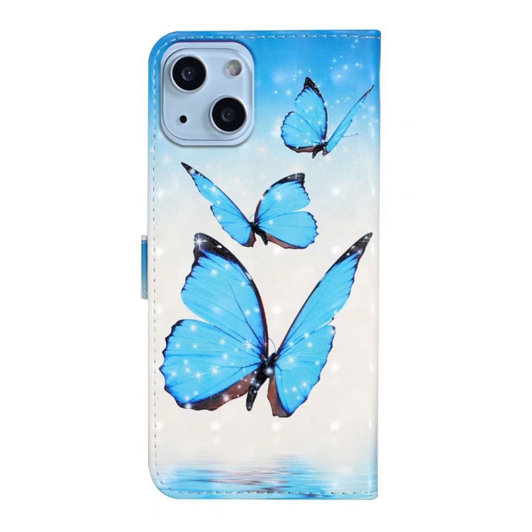 Funda de Cuero para iPhone 15 con Dibujo 3D en Relieve al Óleo (3 Mariposas)
