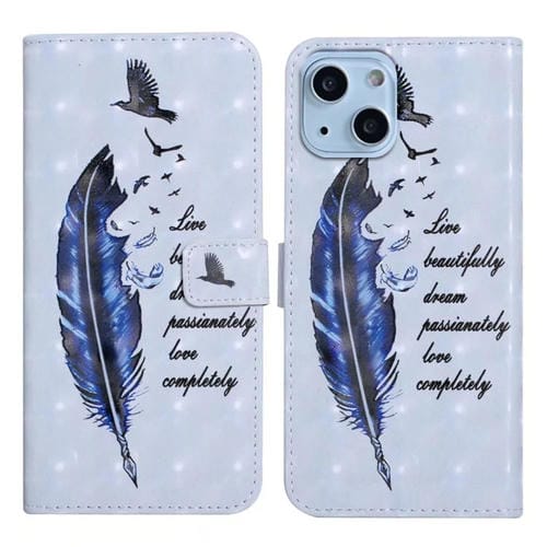 Funda de Teléfono iPhone 15 Cuero Dibujo 3D Relieve al Óleo (Pluma Azul)