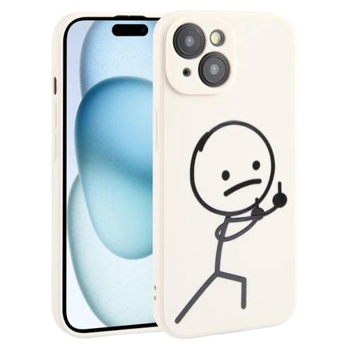 Funda de Teléfono para iPhone 15 Silicona Líquida Patrón Stickman (Blanco)