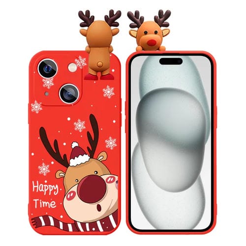 Funda de teléfono TPU iPhone 15 con muñeco en relieve de ciervo y dibujo coloreado (Alce Lindo)
