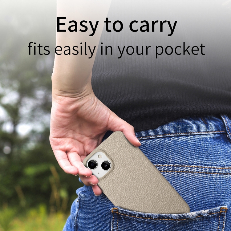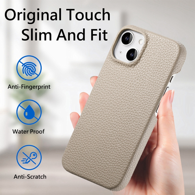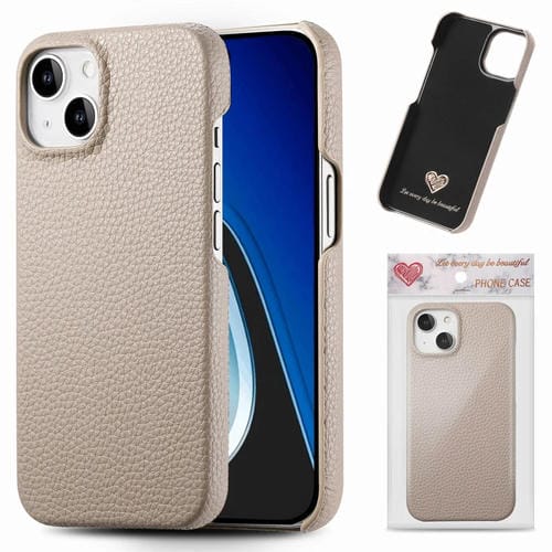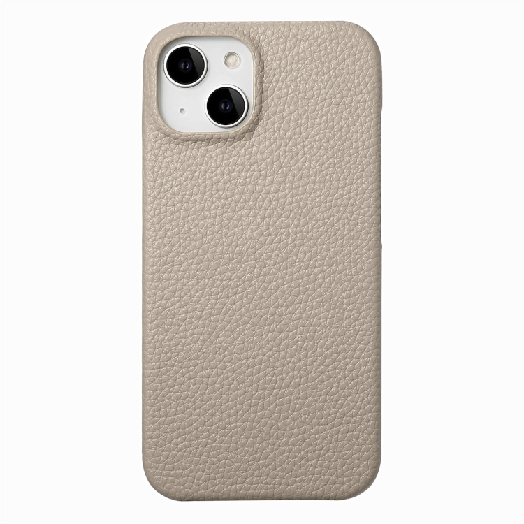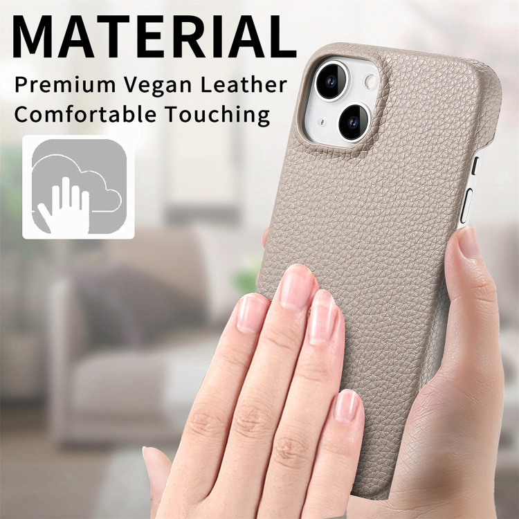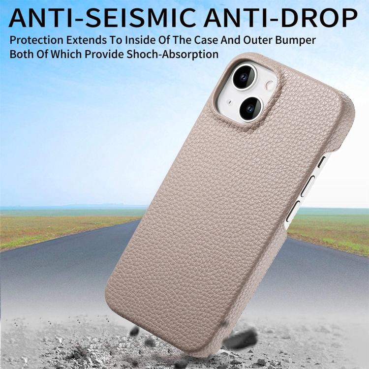 Funda para Teléfono iPhone 15 Parte Trasera Cuero Litchi Oil Edge (Caqui)