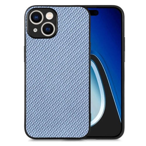 Funda Trasera para iPhone 15 Cuero Textura de Fibra de Carbono (Azul)