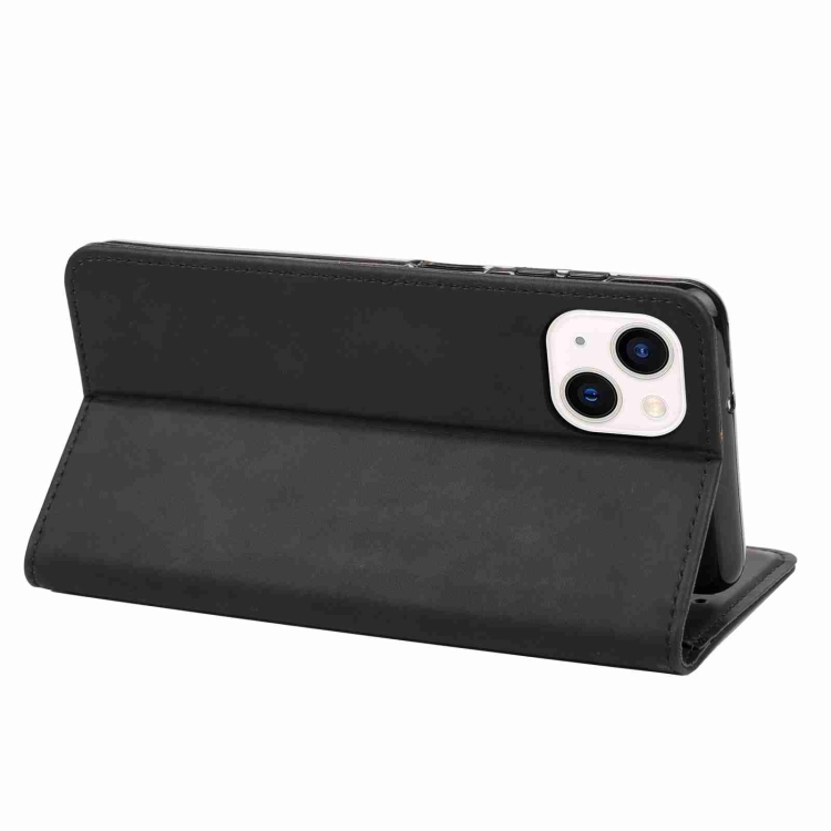 Funda para iPhone 15 Plus Cuero Empalme Sensación de Piel (Negro)