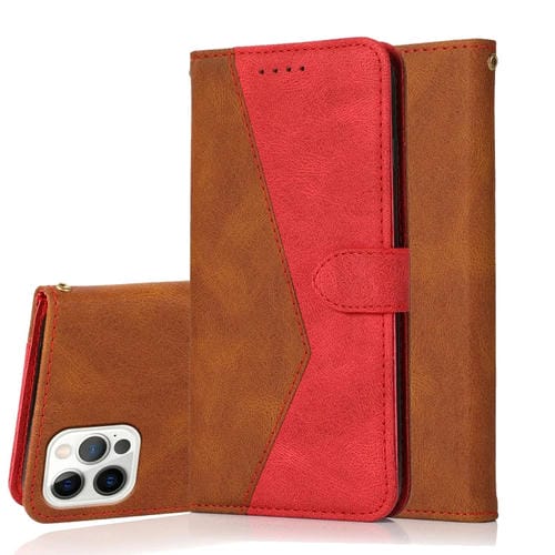 Estuche para Teléfono iPhone 15 Pro Cuero Costuras Dos Colores (Marrón Rojo)