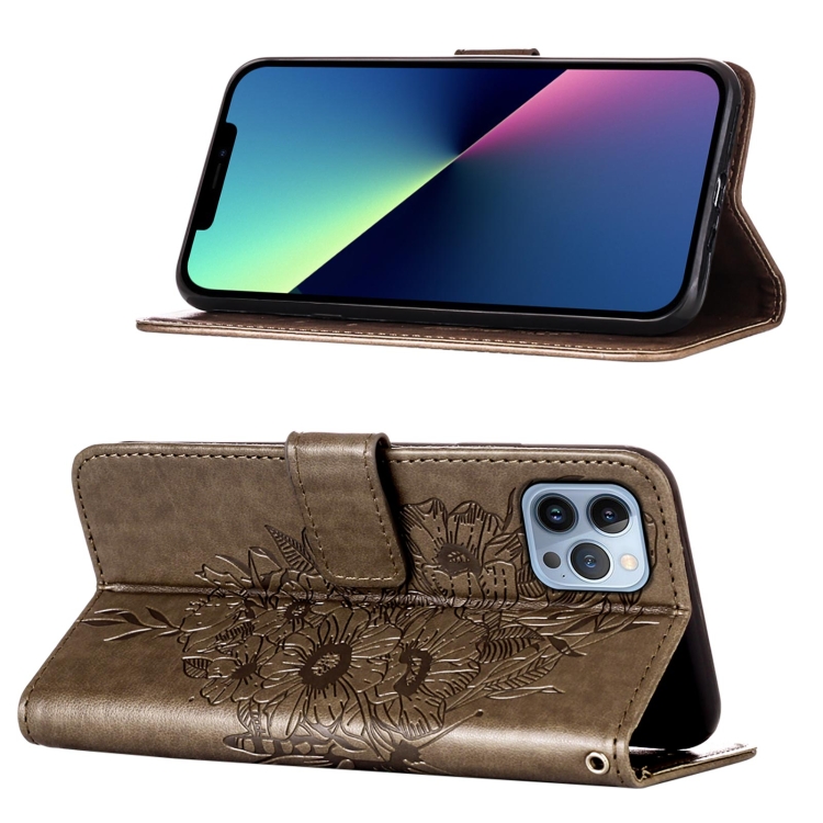 Estuche para Teléfono iPhone 15 Pro Cuero Mariposa En Relieve (Gris)