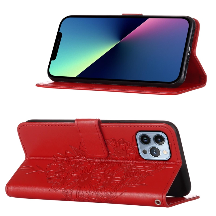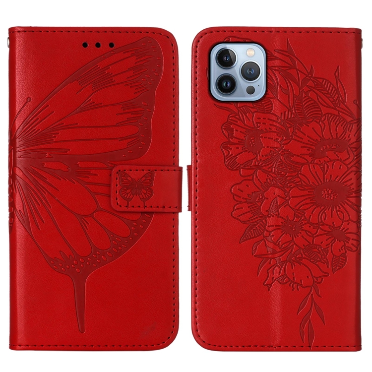Estuche para Teléfono iPhone 15 Pro Cuero Mariposa En Relieve (Rojo)