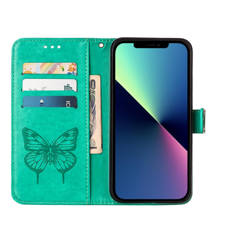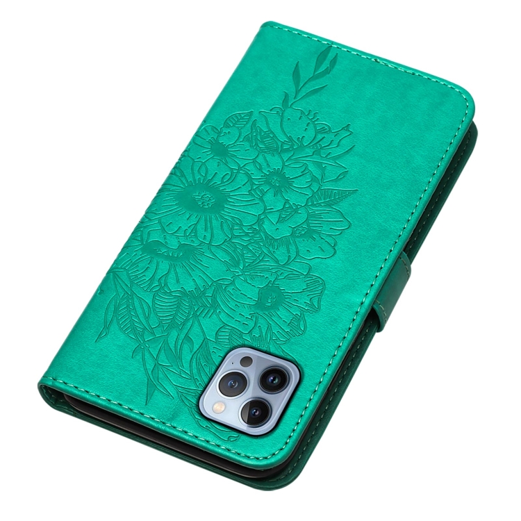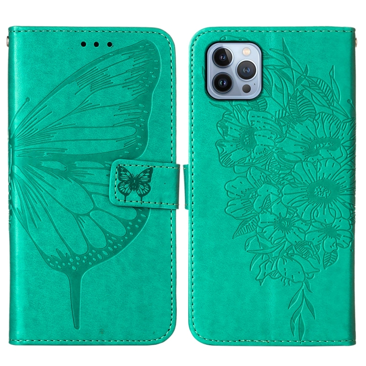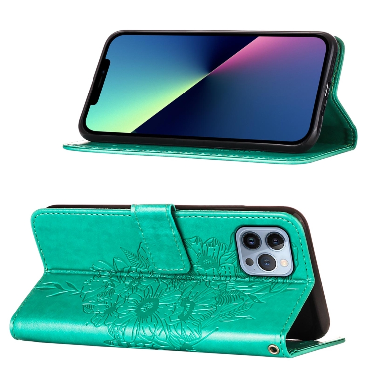 Estuche para Teléfono iPhone 15 Pro Cuero Mariposa En Relieve (Verde)