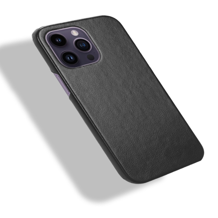 Funda para Teléfono iPhone 15 Pro Contraportada con Textura Litchi (Negro)