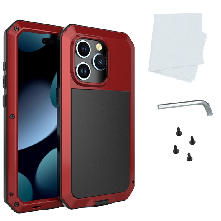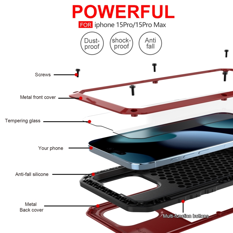 Funda para Teléfono iPhone 15 Pro Metal y Silicona a Prueba de Agua y Golpes (Rojo)