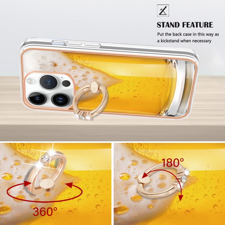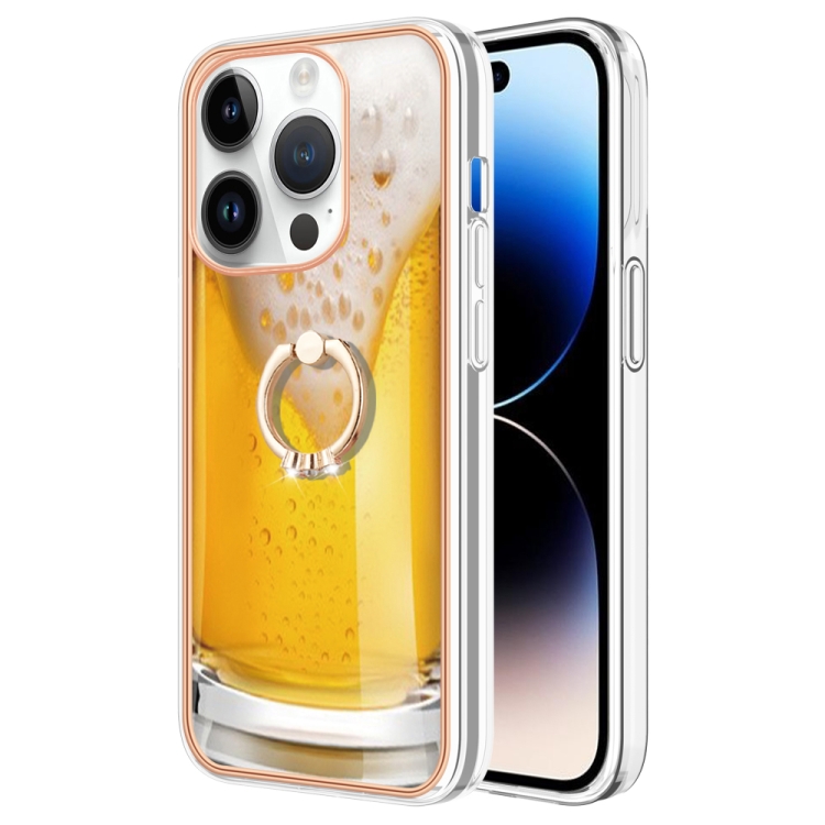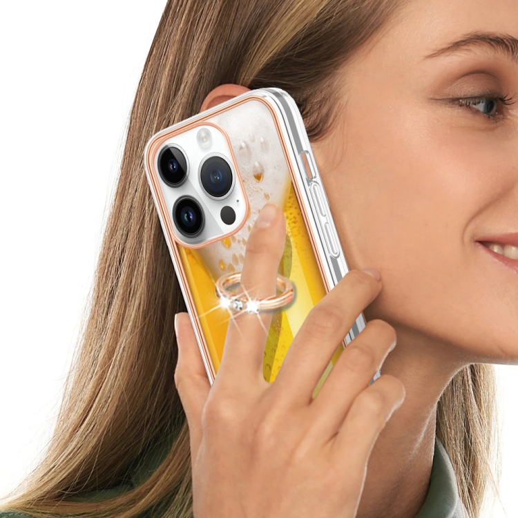 Funda para iPhone 15 Pro Galvanoplastia Imd Doble Cara con Soporte para Anillo (Cerveza de Barril)